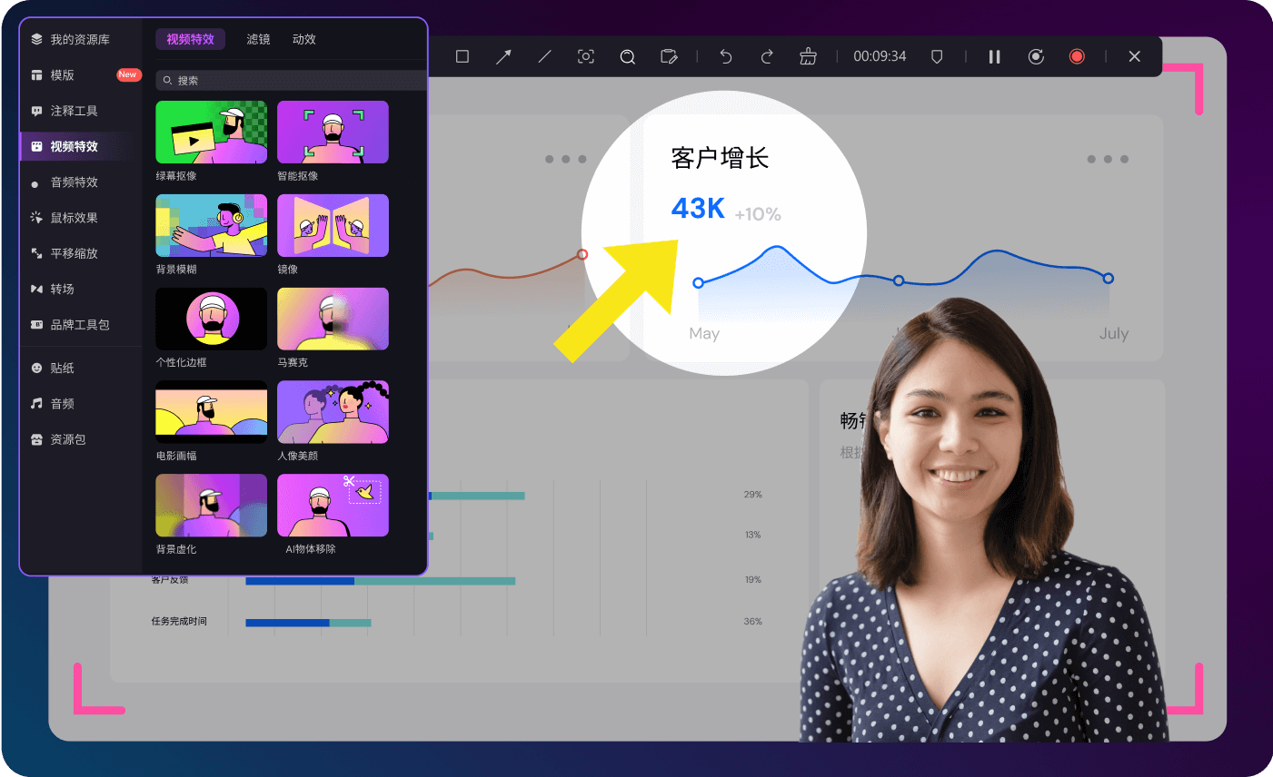 多功能助力课程沉浸式录制,更受新一代学习者的喜爱。