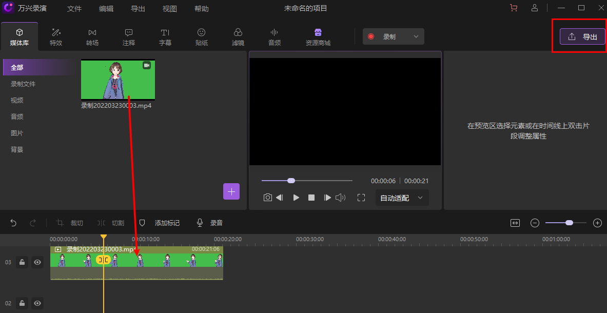- 拖动素材到轨道并导出。