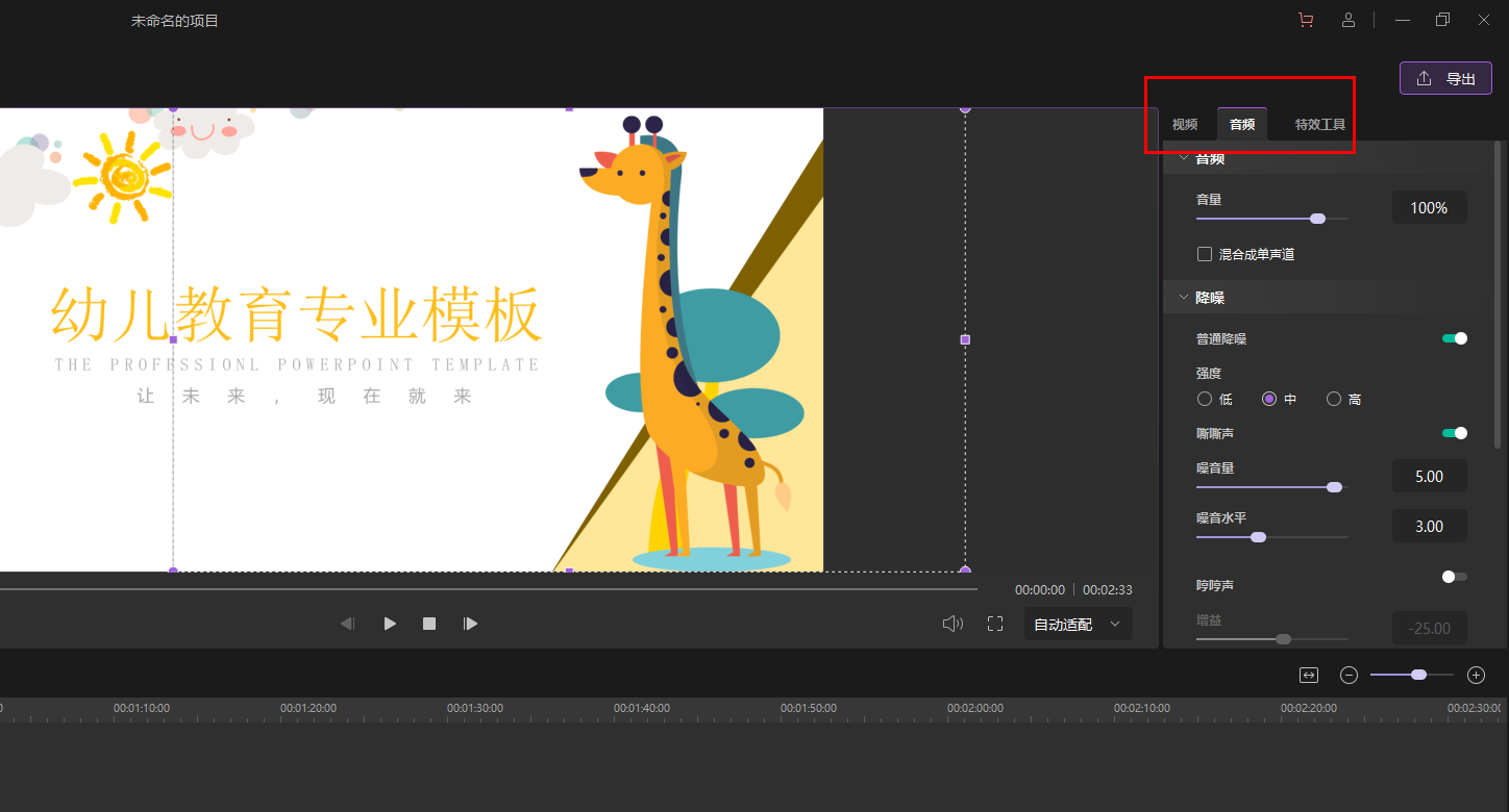 双击您的音频/视频,切换到选显卡-音频,即可对您的音频轨道进行调整。